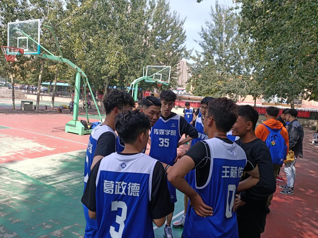 比赛开始前,各队球员在负责人的带领下开始了有条不紊的热身,球员们个个精神抖擞,士气高昂。随着哨声响起,比赛正式开始。在播音一班和播音二班的比赛中,播音二班率先抢到球权,以一个精彩的长传唤醒了赛场。运球、突破、三步上篮,矫健的身手率先拿下得分。编导班的比赛也不减热情,双方球员势均力敌,广编一班球员的精准投篮与广编二班的防守、稳重有劲的运球,成为了比赛的焦点,篮球在队员们的手中划过一道道优美的弧线。球员们虽都是新成员,但完美的配合为在场的同学们献上了一场精彩的比赛。同学们欢呼雀跃,为自己的班级呐喊助威,大家的热情点燃了赛场。最终,初赛以播音一班和广编二班的胜利暂告结束。