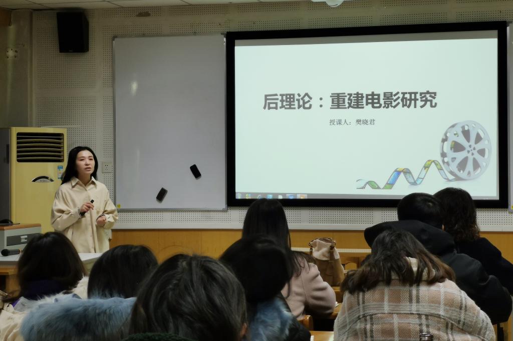最后,樊晓君老师对《后理论:重建电影研究》这本书的基本观点与结构体系进行了讲解,并推荐了众多的理论书籍,如达德利·安德鲁的《电影理论概论》、黄琳的《西方电影理论及流派概论》和陈晓云主编的《电影理论基础》等。此后,樊晓君老师与各位教师和同学展开热烈讨论,并针对部分教师及员工所提出的问题做出了详尽的回答,到场师生均表示获益匪浅。